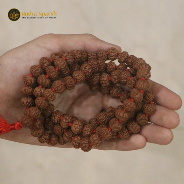 Mala Structure: 108 Rudraksha beads + 1 Meru bead
